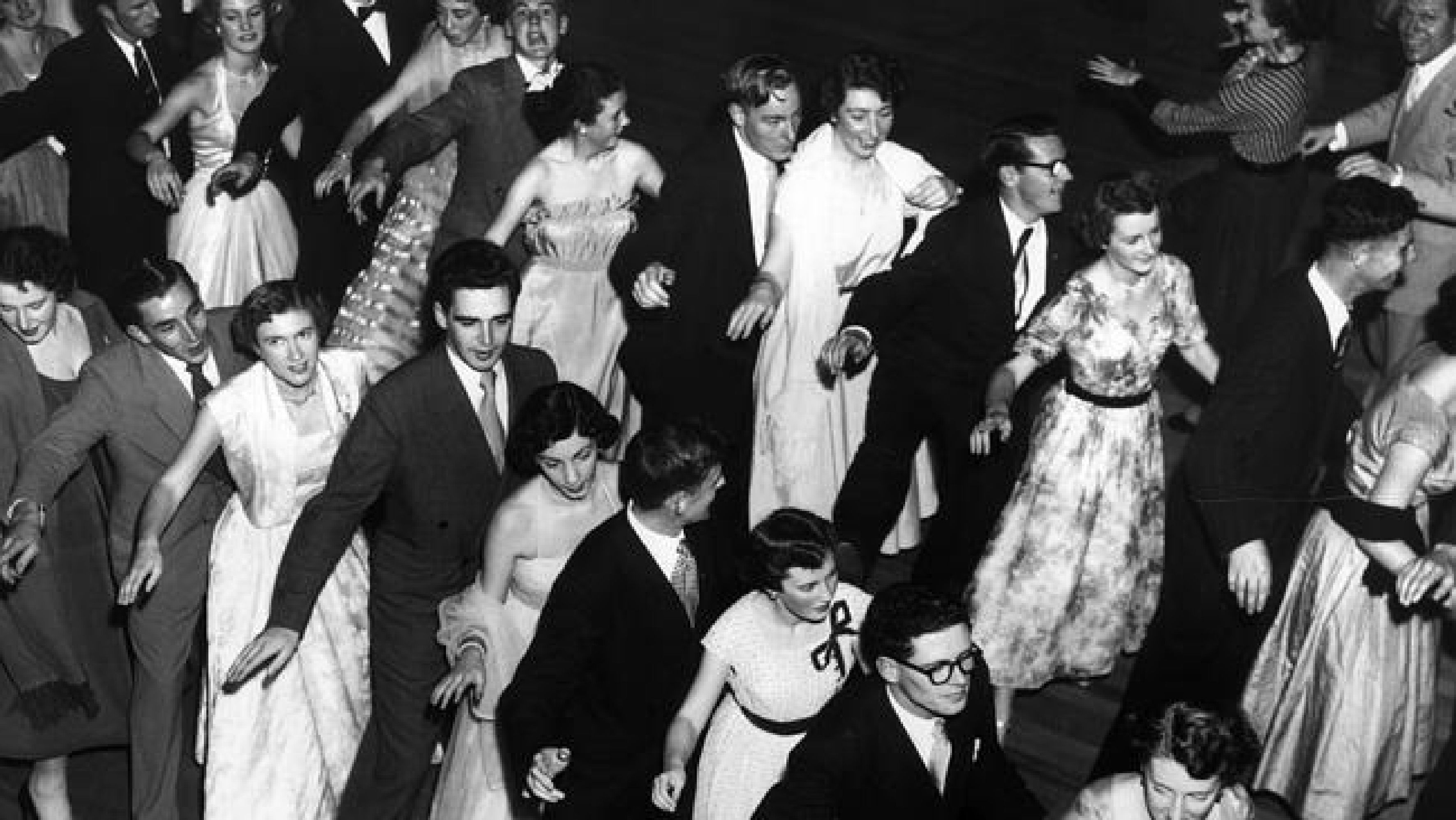 American square dancing arrived in the early 50s and invaded ballrooms as well as local halls. The music and movements directed by callers was prescriptive. Dancers could join clubs or buy records to dance informally. After the release of the film Blackboard Jungle in 1956, rock and roll dancing became popular. It was no longer necessary to have physical contact with a partner and the tradition of a man inviting a woman to dance was no longer necessary. The experience of going to a dance on Saturday night was waning by the end of the 50s when the lure of TV and the drive-in theatre proved to be stiff competition.